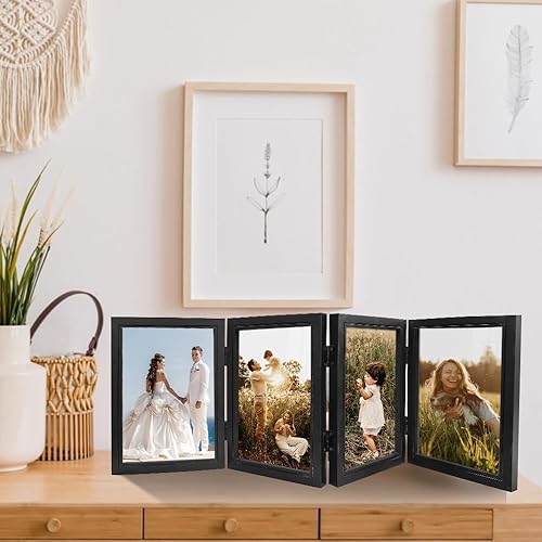 Getyjoe Cadre Photo Multiple 4 Photos Cadre Photo en Bois Pliant à Charnière Pour Famille Amis Cadres Photo DIY 12.5x17.5 cm Adapté à la Décoration Murale de Bureau de Photos(Noir)