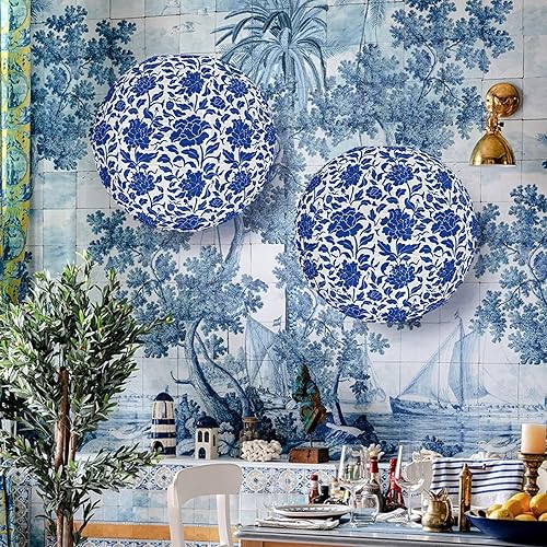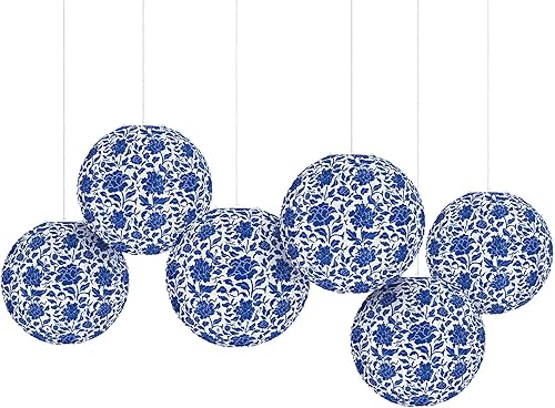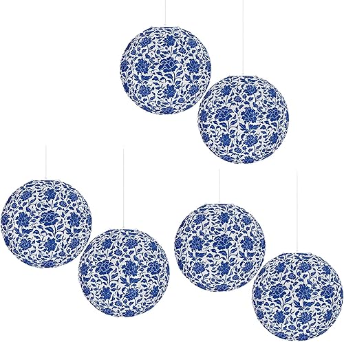 LIbgiubhy Lot de 6 lampes chinoises élégantes en porcelaine bleue et blanche à suspendre pour anniversaire, mariage, décoration de fête