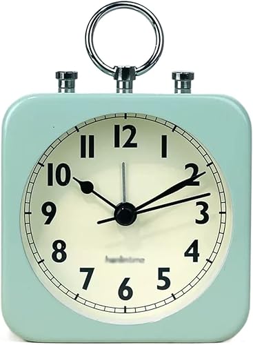 Réveil Réveil avec boîtier carré en métal, Petite Horloge carrée à Piles sans tic-tac pour Table de Chevet, Table de Salon, réveils de Bureau (Couleur: Vert) (GRE