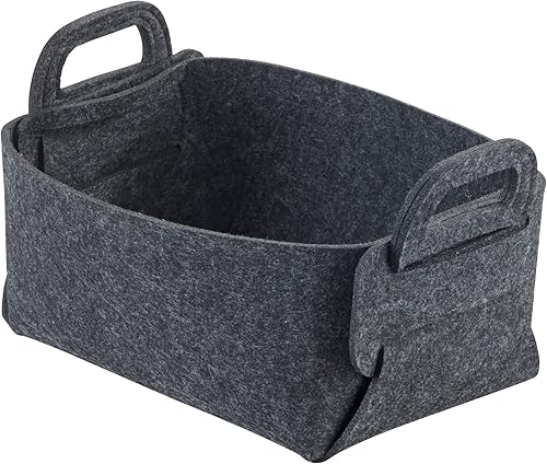 WENKO Corbeille en feutre Nina S, kit de 2 paniers de rangement à base de polyester recyclé, corbeilles pliables compactes avec poignées, contenance de 2,4 l chacune, 19 x 14 x 9 cm, gris foncé
