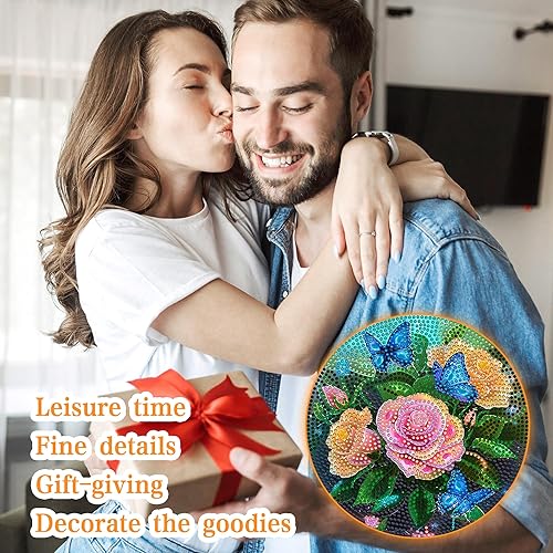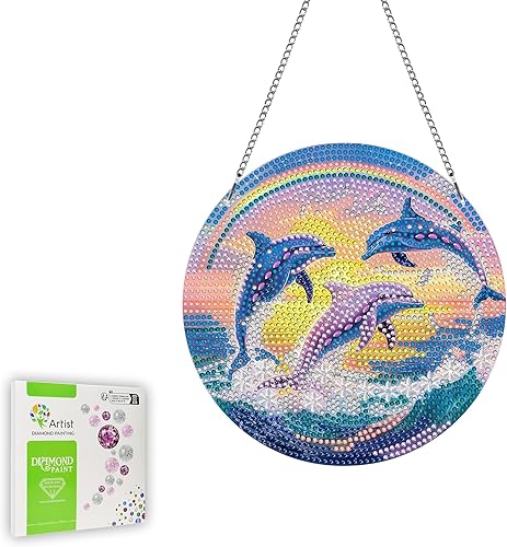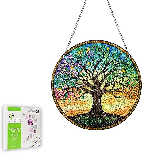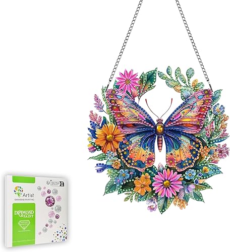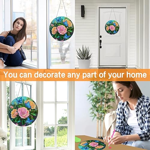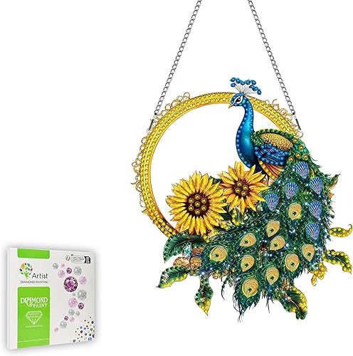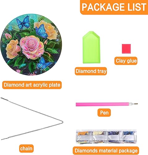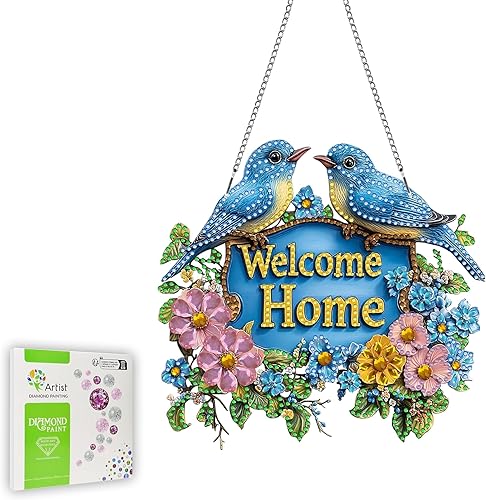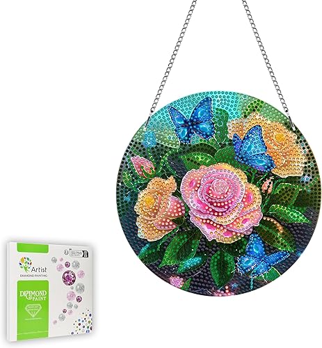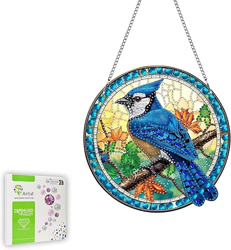 Ginfonr Diamond Painting Pendentif Oiseaux Avec Chaîne, 5D Diamond Painting Adulte Fleurs, 5D DIY Pendentif Peinture Diamant Adulte Enfant, Décoration de Maison et Jardin 20x20 cm
