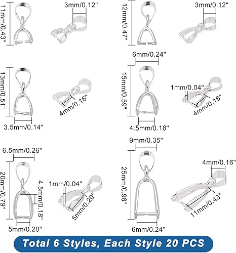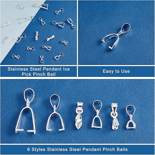 PH PandaHall90pcs Fermoir en Argent 6 Tailles Pinces à Glace pour la Fabrication de Bijoux