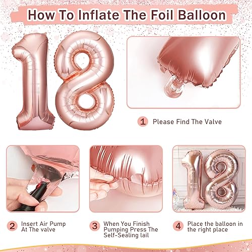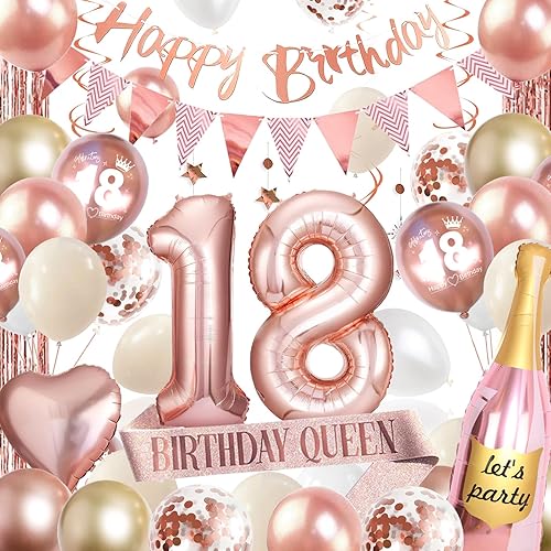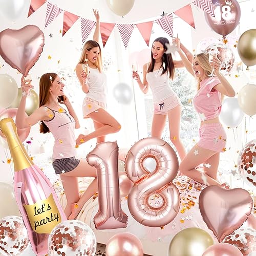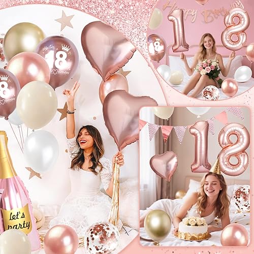 Décoration 18e anniversaire fille, ballon 18e anniversaire or rose, décoration d'anniversaire 18 filles avec bannière Happy Birthday avec ballon en aluminium 18 pour ballons 18 décorations femmes