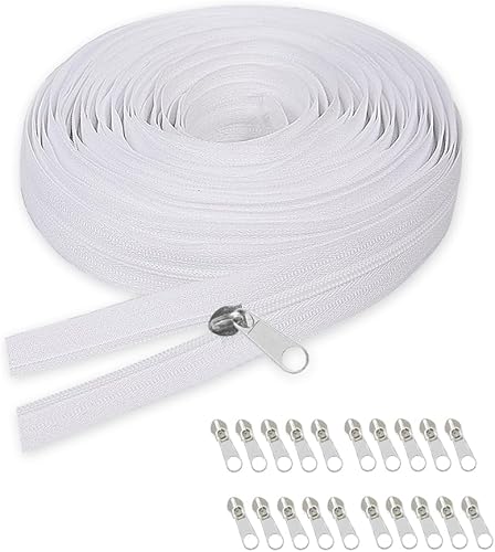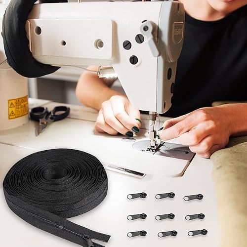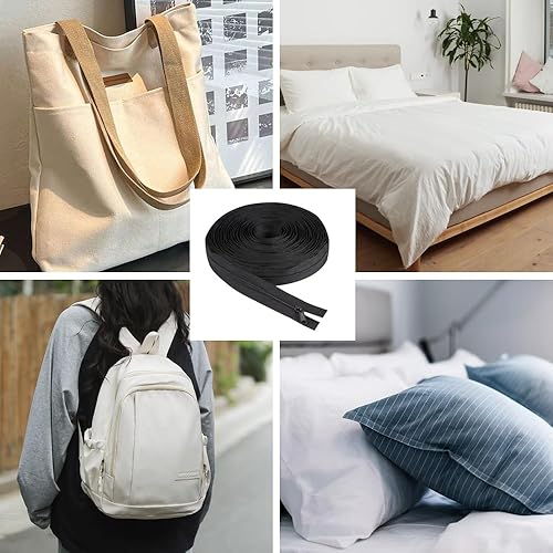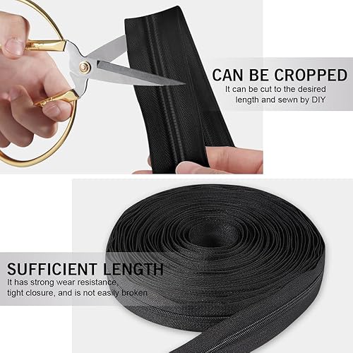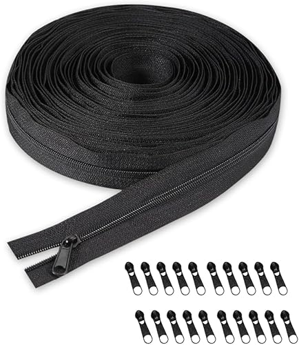 GIDWRIY Fermeture Éclair Sans Fin 10 M,Fermetures Éclair à Glissière en Nylon avec 20 Curseurs,Réparation Fermeture Eclair pour Couture,Zip Fermetures Eclair pour Sac pour Bricolage, Artisanat-Noir
