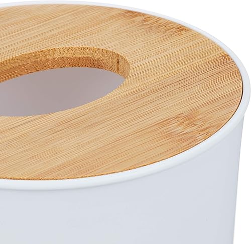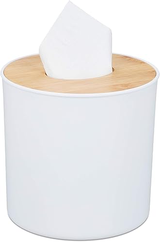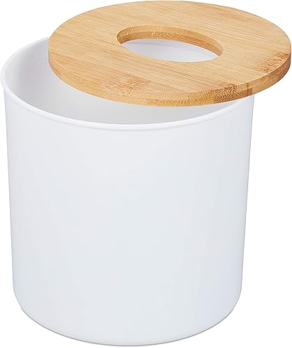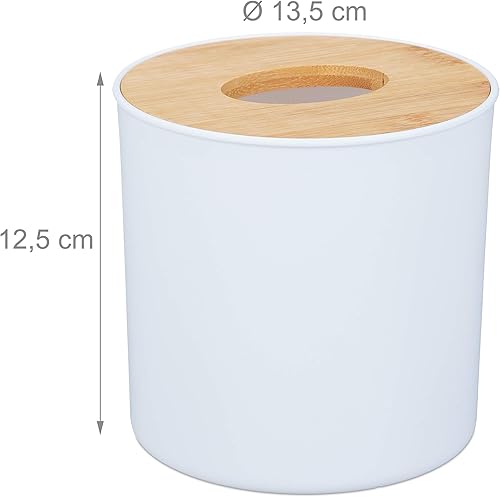 Relaxdays, Boîte pour Cotons de Maquillage avec Couvercle en Bambou, Design Moderne, 75x60 cm, Blanc/Nature