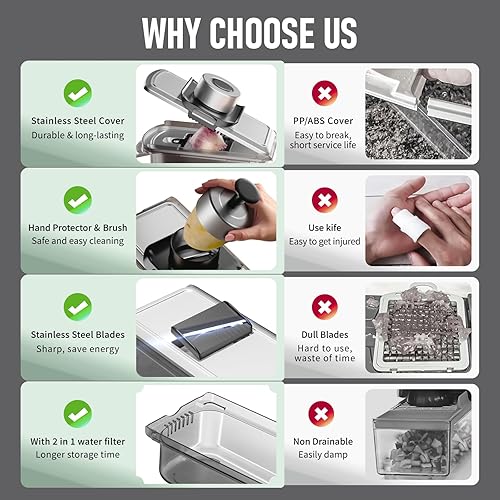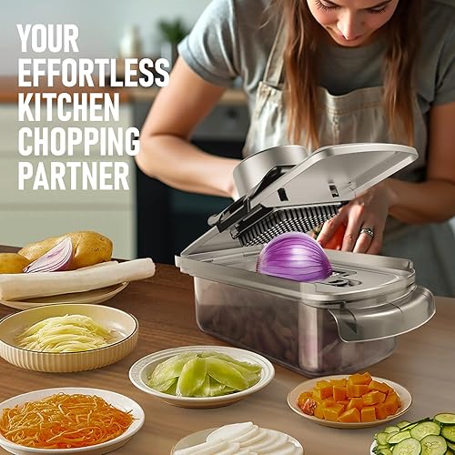 Coupe Legumes, Coupe de légumes de mandoline en acier inoxydable 12 en 1, Coupe de légumes avec conteneur, Coupe de salade, Coupe de carotte et d'ail, Oignon et fruits