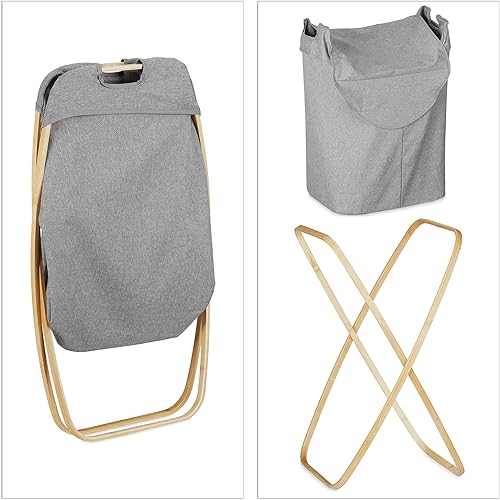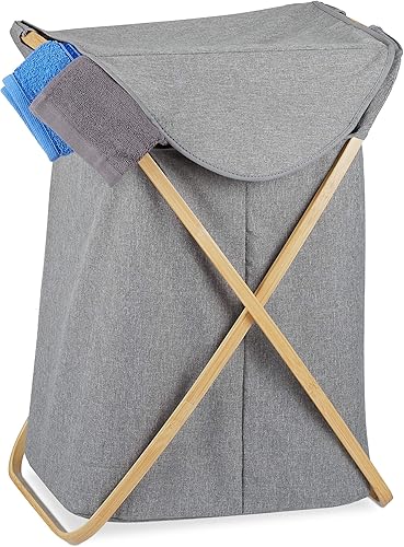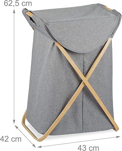 Relaxdays Panier à linge, corbeille à vêtements pliant avec couvercle, 58 L, transportable, Bambou, tissu, 62,5x43x42 cm