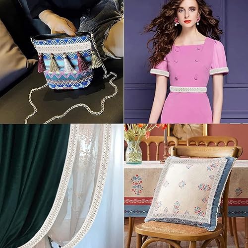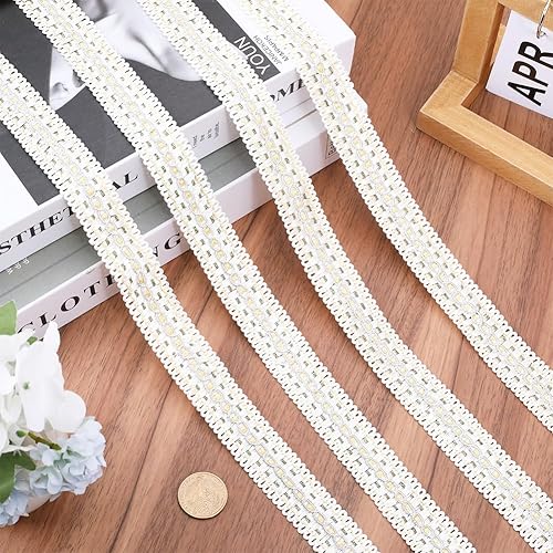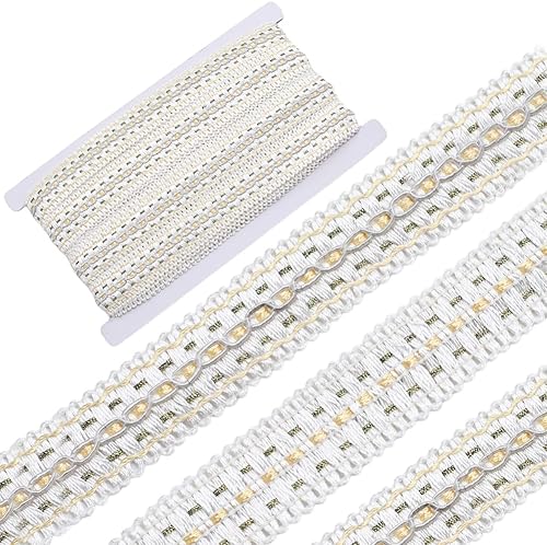 GORGECRAFT 12m*26mm Blanc Gimp Tresse Garniture Polyester Tissu Couture Ruban Rideau Tissu Garniture Défilement Bord Garniture Garniture D'Ameublement pour Rideau Abat-Jour Housse la Maison Artisanat