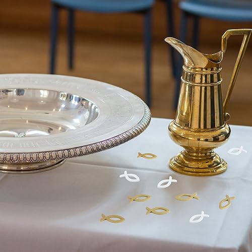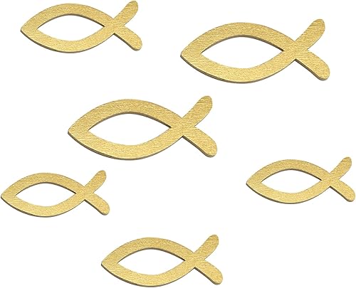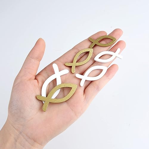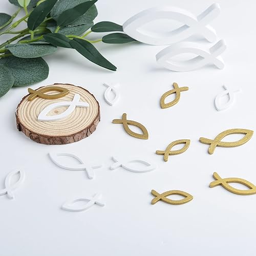 FEPITO 100 décoration de Poisson en Bois décoration de Dispersion de Poisson en Or Blanc pour baptême, Communion et Confirmation décoration de baptême garçon Fille