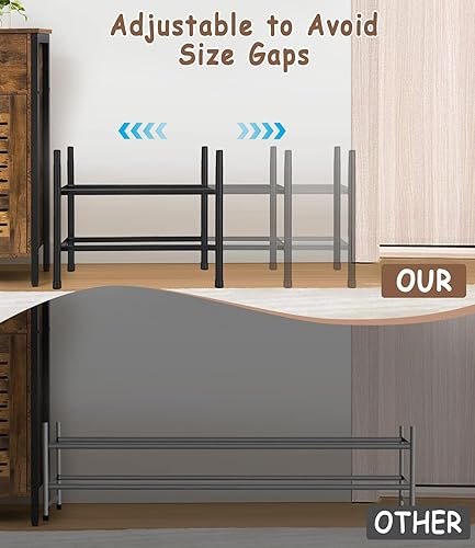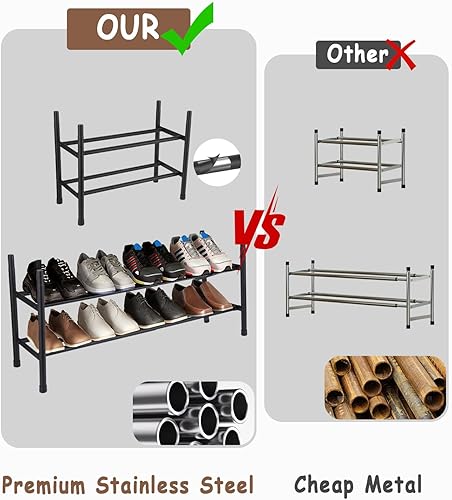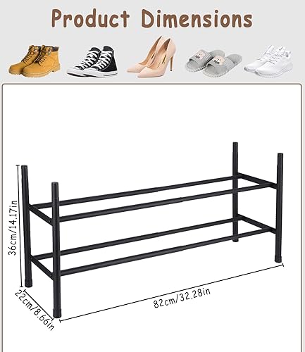 Zaxiva Meuble Chaussure 2 Niveaux, Étagère Chaussures Extensible 44-82cm, Range Chaussures en Acier Inoxydable, Porte Chaussures Stable en Noir, Rangement Chaussures Gain de Place pour Petits Espaces