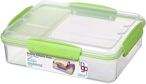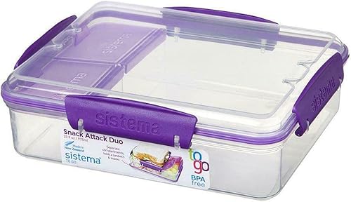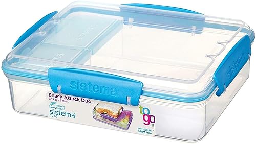 Sistema Snack Attack Duo to Go - Boîte à Sandwich avec 3 Compartiments - 975 ML - Design empilable - sans BPA - Bleu Sarcelle