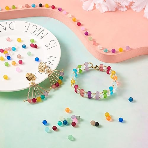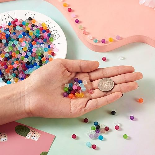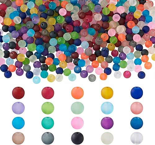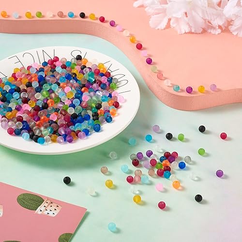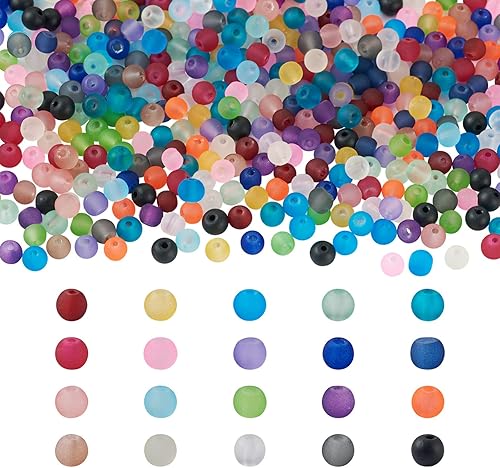 Pandahall Lot de 500 perles rondes en verre dépoli transparent de 6 mm pour la fabrication de bijoux, bracelets, colliers, loisirs créatifs