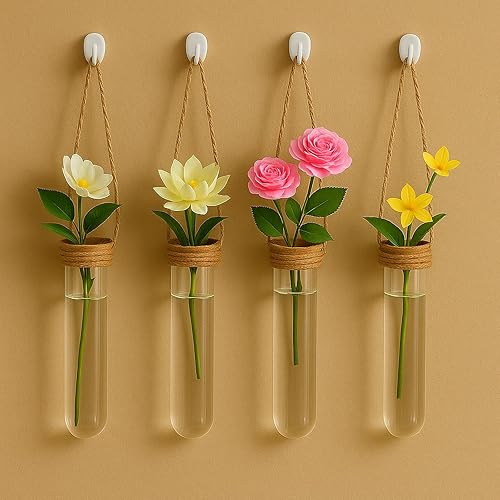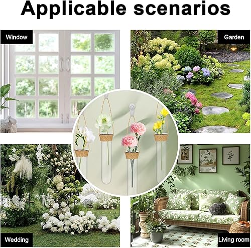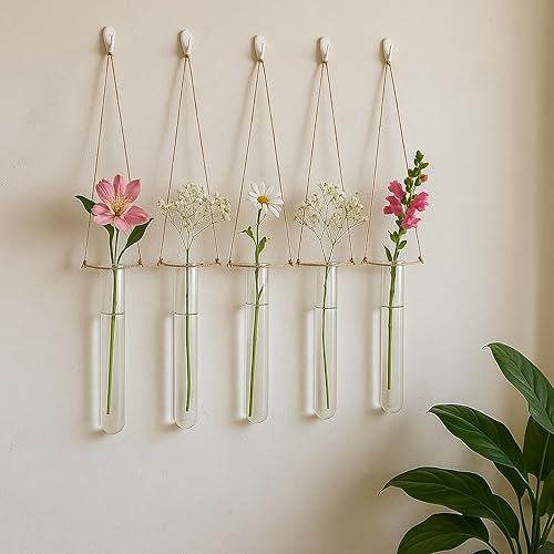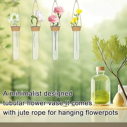 Lot de 6 Tube à Essai Suspendus pour Fleurs, Vase à Fleurs en Verre avec Crochets et Ficelles, Vase Tube à Essai pour Plantes Hydroponiques, Décoration Maison, 15 x 2,5cm