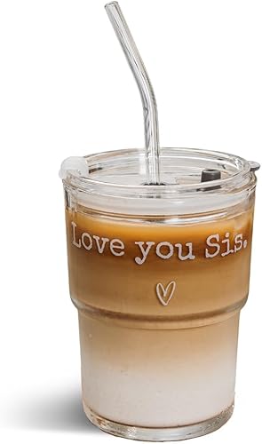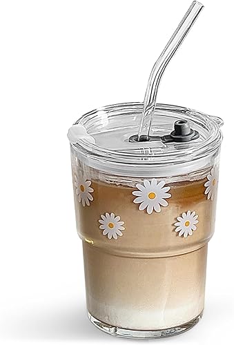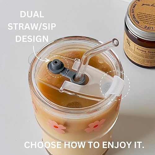 Olvini Gobelet en verre de 390 ml avec paille et couvercle, gobelet réutilisable pour eau, matcha et café de voyage (transparent)