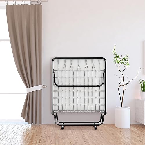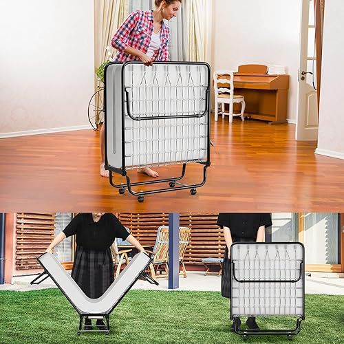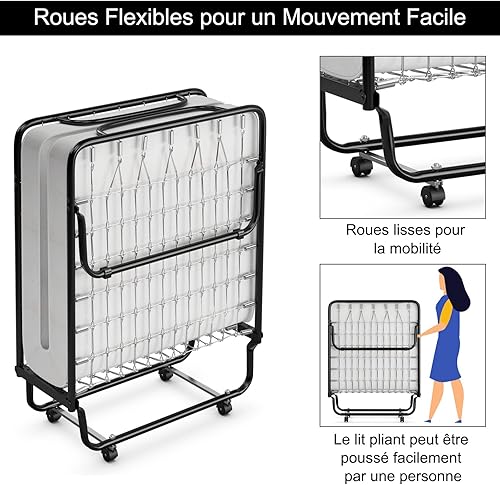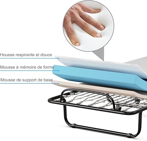 Giantex Lit Pliant 80x190 cm avec Matelas en Mousse Mémoire de Forme, Lit d’Appoint Pliable en Acier avec 4 roulettes Universelles pour Maison, Bureau et Camping