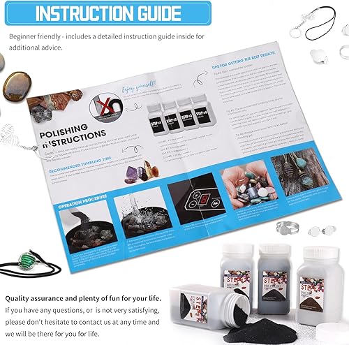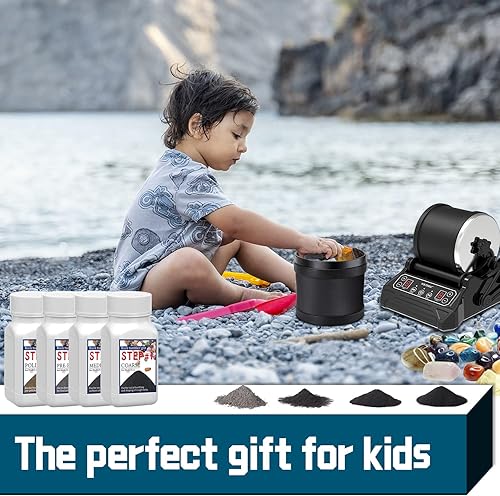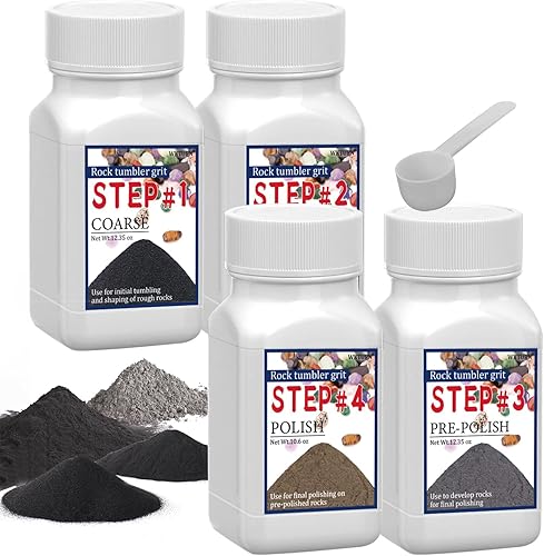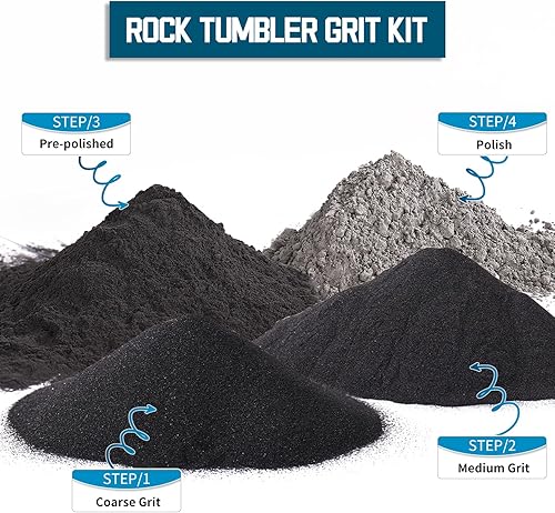 WKTURN Rock Tumbler Grit Kit 4 étapes en carbure de silicium pour pierres, verre, pierres précieuses – grossier, moyen, pré-poli, polissage final, compatible avec n'importe quelle marque de polisseuse