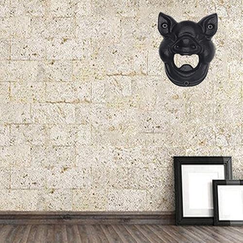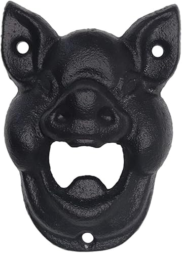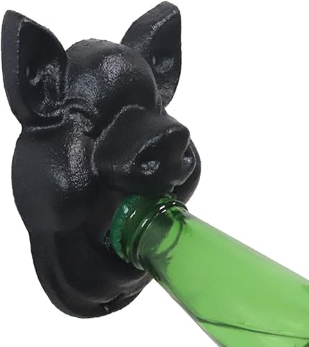 Livecitys Décapsuleur mural vintage en fonte avec tête de cochon - Noir