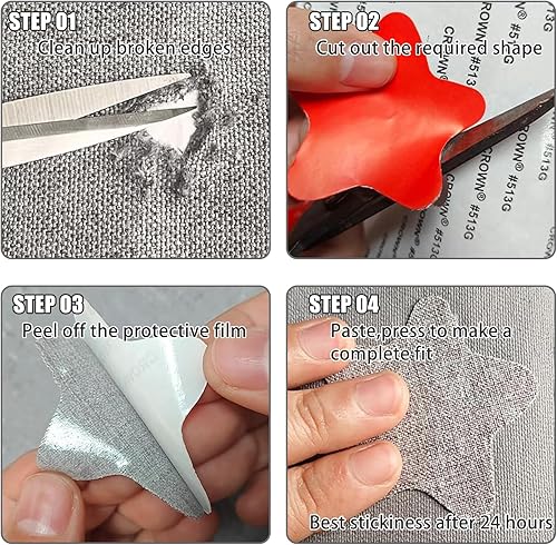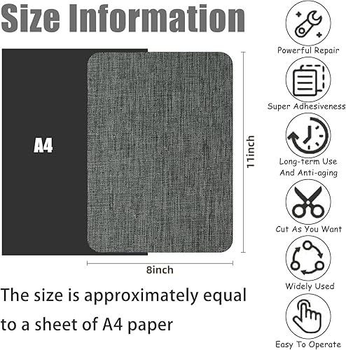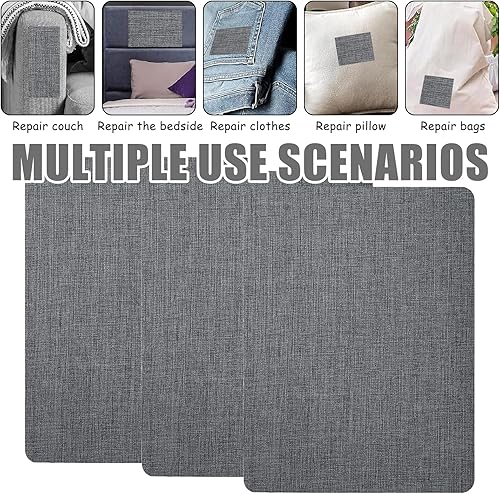 Lot de 3 grands patchs autocollants en tissu de lin - Pour canapés, chaises, chaussures et vêtements - Kit de réparation de moquette - Facile à couper et réutilisable - Gris foncé - 20,3 x 27,9 cm