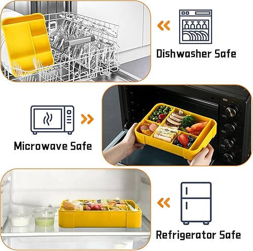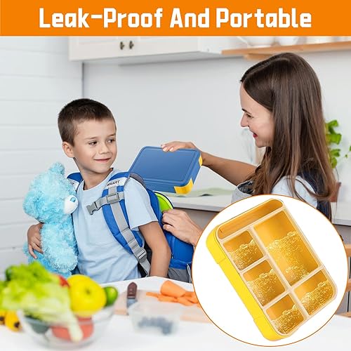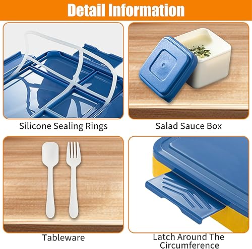 Boîte Lunch Anti-Fuite avec 6 Compartiments,1 Box Sauce, Boîte Bento Adulte avec Fourchette Cuillère,Boite Repas Enfant pour École Pique-Nique,Boîte Snacks pour Micro-Ondes,Lave-Vaisselle(Bleu, Jaune)