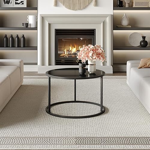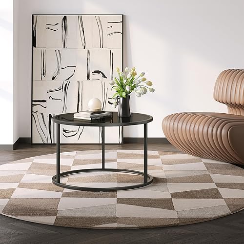 SAYGOER Petite Table Basse en Verre Ronde dorée pour Petit Espace, Table Centrale Moderne Simple avec Cadre doré pour Salon, Maison, Bureau, Assemblage Facile
