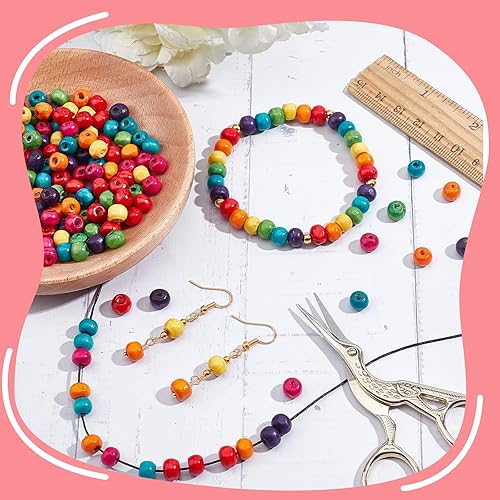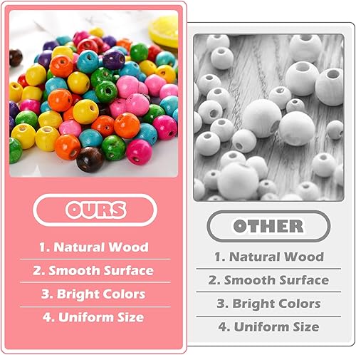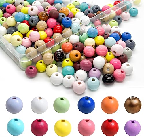 300 Pièces Perles en Bois Multicolores, 10mm DIY Bijoux en Perles de Bois, Colorée Perles en Bois Naturel avec Boîte Transparente, Perles de Bricolage Rondes pour Bracelet Collier Macramé Artisanat