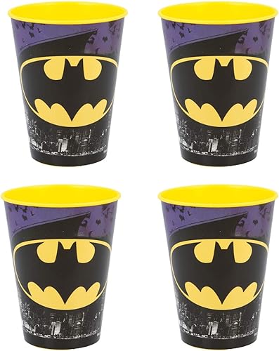 Theonoi Lot de 4 gobelets pour enfant 260 ml / au choix : Batman/Gobelets en plastique sans BPA / Cadeau pour garçon (design Batman)