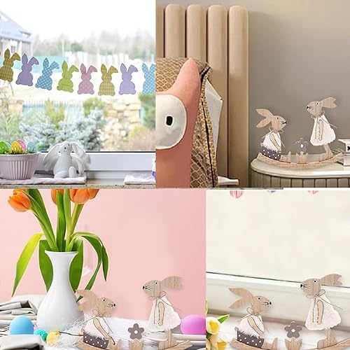 Décoration Lapin de Pâques pour Debout,Figurine de Lapin de Pâques en Bois Peinte à la Main,DéCoration de PâQues Lapin en Bois,Ornements D'artisanat de Lapin pour Ornements de Pâques pour Décoration