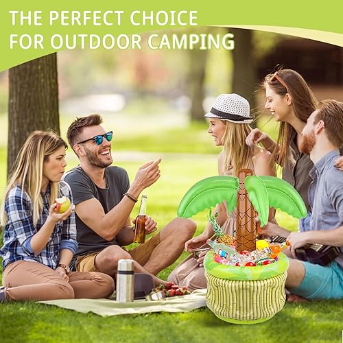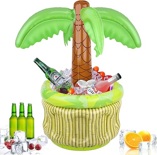 dellyy Palmier Gonflable, Glacière Gonflable Forme de Palmier, Coffre Trésor Gonflable, Refroidisseur de Piscine, Bar Piscine Flottant, pour Décoration Fête d'Été sur Plage Piscine (Coffre au trésor)