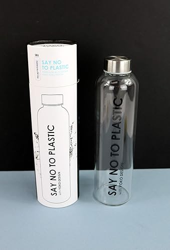 YOKO DESIGN - GLASS BOTTLE 750 ml SAY NO TO PLASTIC avec boite cadeau ronde