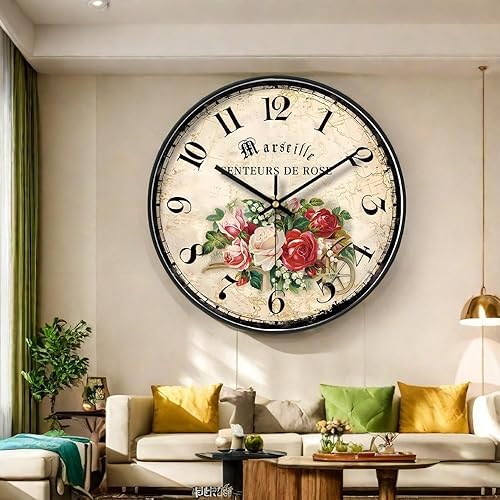NUOVO Horloge murale de jardin de 40,6 cm - Motif floral - Style shabby chic - Vintage - Élégante - Silencieuse - Pour salon, chambre à coucher, cuisine