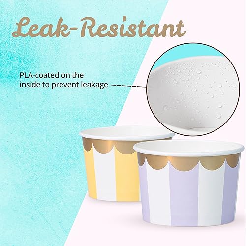 Coupes en Papier Confettiville, 50 pièces, 9 oz, Bols à Desserts Jetables pour Aliments Chauds ou Froids, Rayures Roses et Dorures