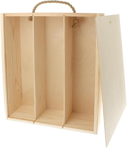 Wooden World - Boîte à vin élégante en bois avec poignée en ficelle pour trois 3 bouteilles