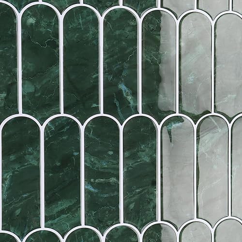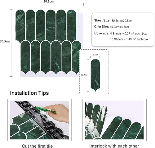 CRE8TIVE 16 Pièces Credence Adhesive pour Cuisine en Éventail 3D Credence Adhesive Effet Marbre Vert Foncé Dalle PVC Adhesive Murale Imperméable Carrelage Adhesif Mural Salle de Bain 30.5cm x 30.5cm