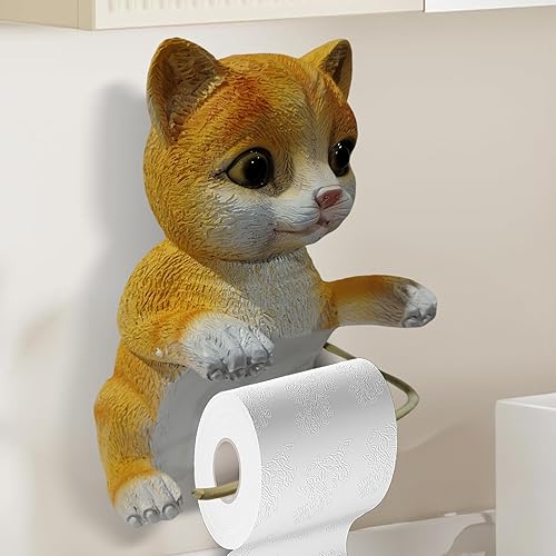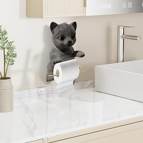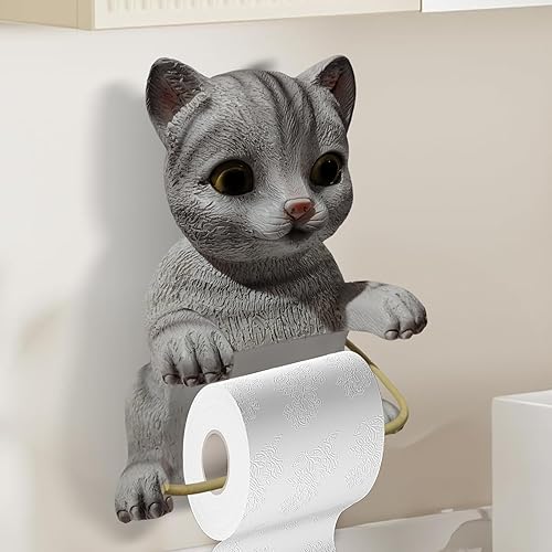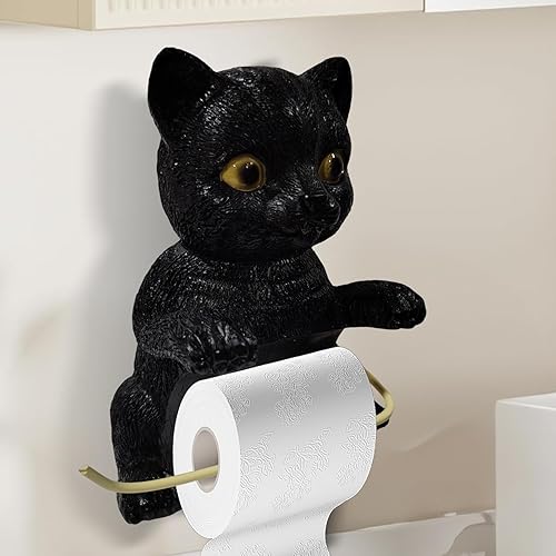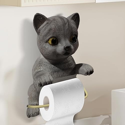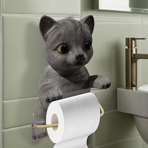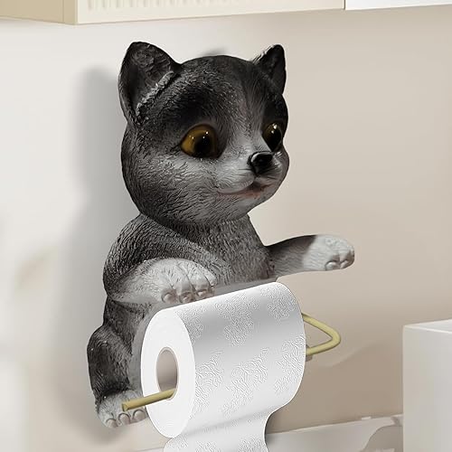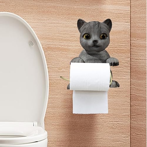 Porte-Rouleau de Papier Toilette en Forme de Chat, Porte-Papier Toilette Mural Amusant en Forme de Chat, Support de Rouleau de Papiertoilette Statue de Chaton en Résine pour Salle de Bain 22x16x12cm
