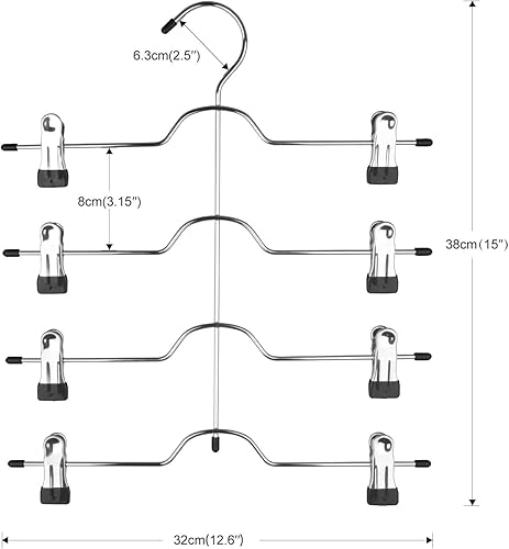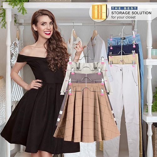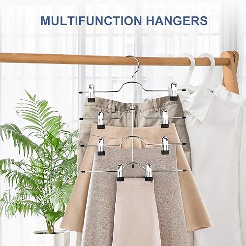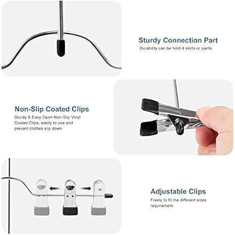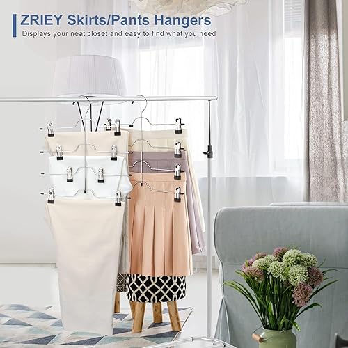 ZriEy Lot de 3 cintres pour pantalons peu encombrants avec clips - En métal - Pour 4 pantalons - Avec 8 pinces réglables - Antidérapants - Pour pantalons/jupes