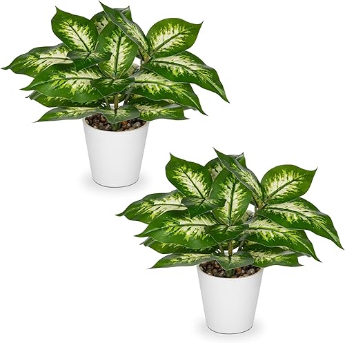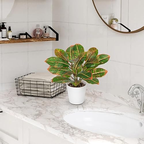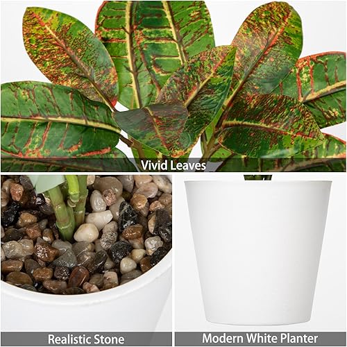Arborus Lot de 2 plantes artificielles en pots blancs, 25 cm, fausses plantes croton avec feuilles colorées, petites plantes artificielles décoratives d'intérieur pour décoration de table de maison