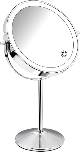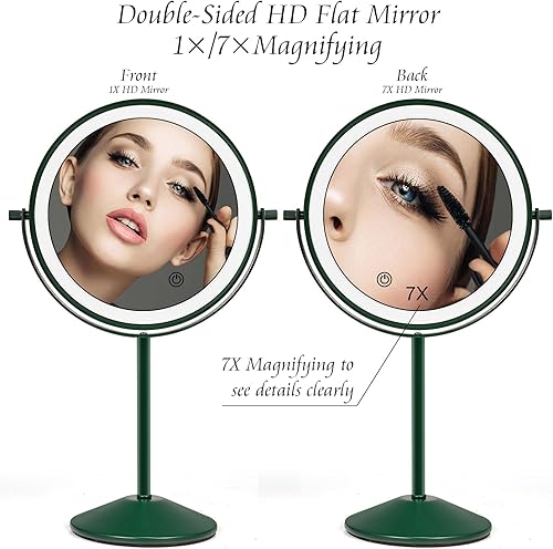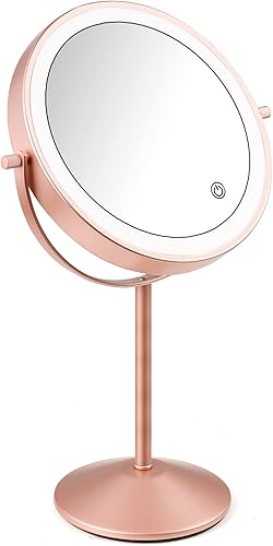 Micacorn Miroir Maquillage Grossissant 1x7x LED Double Face Miroir Rechargeable par USB Miroir de Courtoisie Lumineux Miroir de Rotation à 360 Degrés avec Luminosité de L'écran Tactile Réglable