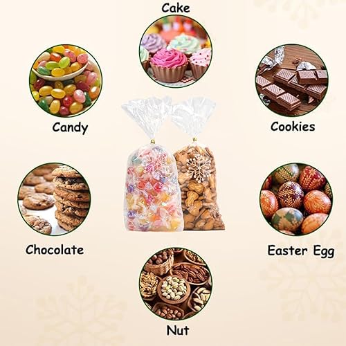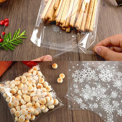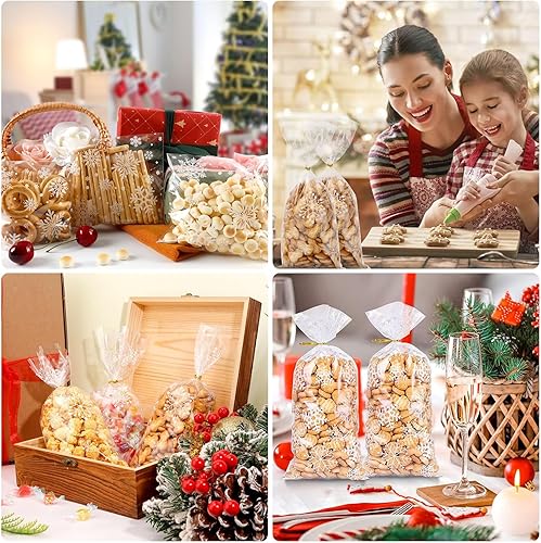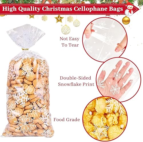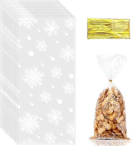 Paquet De 100 Sachets À Biscuits De Noël, Flocon De Neige En Cellophane Transparent Avec 100 Attaches Torsadées, Pour Bonbons, Chocolats