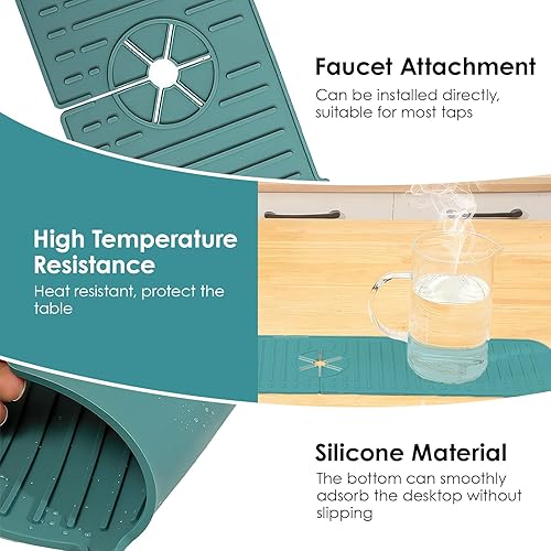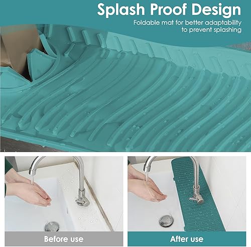 Fadrun Tapis de Robinet, Silicone de Pare éclaboussures pour évier, 61cm x 14.5cm, Protection Anti éclaboussures, pour Protéger Les Cuisines et Les Salles de Bain, Plans de Travail et Sol-Vert