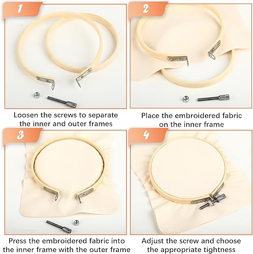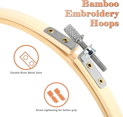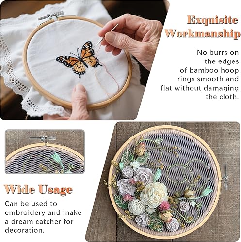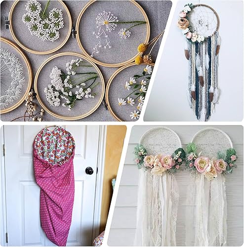 Lot de 6 tambours à broder en bambou – cercle broderie rond réglable en bois lisse, idéal pour DIY, déco et point de croix – tambour broderie 3/4/5/6,3/7/8 pouces en cercle en bois.
