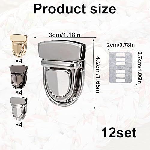 Huybaa 12Pcs Fermoir Sac a Main, Serrures à Portefeuille, Serrures pour Sacs, Fermoirs pour Sacs à Crochet, Cadenas Boucle pour Sac en Métal, Avec Fermeture en Spirale, pour Sacs en cuir