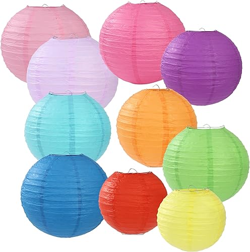20 pièces Lanternes Papie,Lampion Papier,Rondes Lanterne Papier,10 Couleurs et 4 Tailles,adaptées à la Décoration extérieure, aux Mariages, Anniversaires, Fêtes et événements de Noël