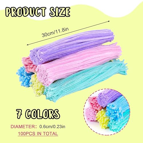 Vordpe Lot de 100 nettoyeurs de pipes en peluche flexible - Fil chenille - Pour enfants - Pour bricolage et décoration - 7 couleurs (30 cm x 6 mm)