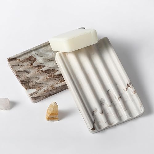 Koville Porte-Savon en Marbre Naturel Italien pour Douche, Plateau à Savon en Pierre pour Salle de Bain, Rectangulaire Palissandro Classico