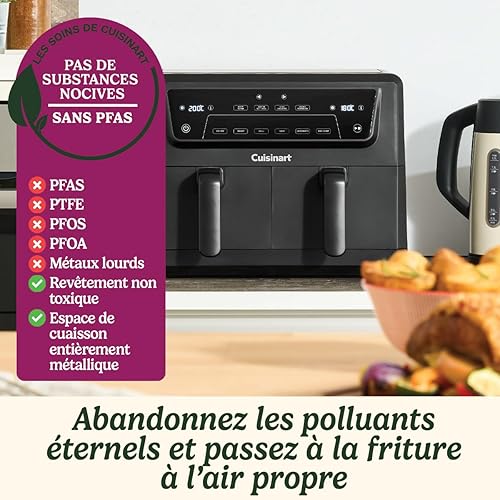 Cuisinart XXL Air Fryer Dual-Zone, Sans PFAS, Cuisson sans produits chimiques, Air Fry, Rôti, Gril, Patisserie, Déshydratation, Max Crisp, et Garder au chaud, Tiroirs doubles, 2 x 5.2L