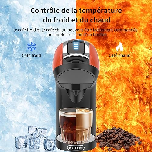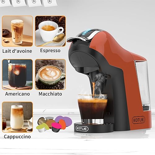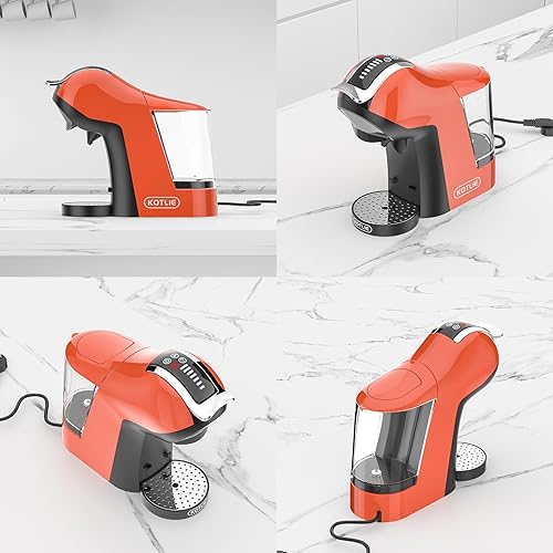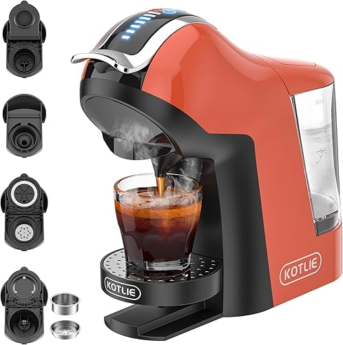 KOTLIE EM-308A Machine à café multifonctionnelle, compatible avec différentes marques de capsules de café/dosettes ESE (44 mm)/poudre de café (Rouge-orange)