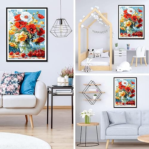 QQYRHN 5D DIY Coquelicot Kits de Peinture Diamant, Complète Fleurs Colorées Diamond Painting pour Adulte Débutants, Fleurs Art du Diamant, Décoration Murale Maison Peinture au Diamant Avec 30x40 cm