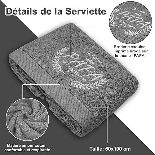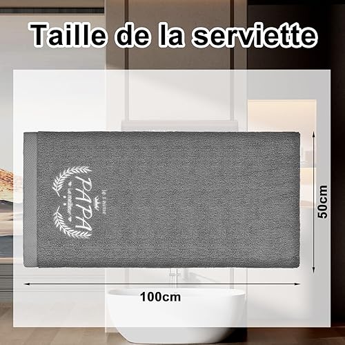 Hapculon Papa Serviette de Toilette Brodée Grandes Serviettes de Bain Cadeau de Fête des Pères Idee Cadeau Papa Anniversaire Papa Cadeau d'anniversaire Serviettes de Douche 50 x 100 cm