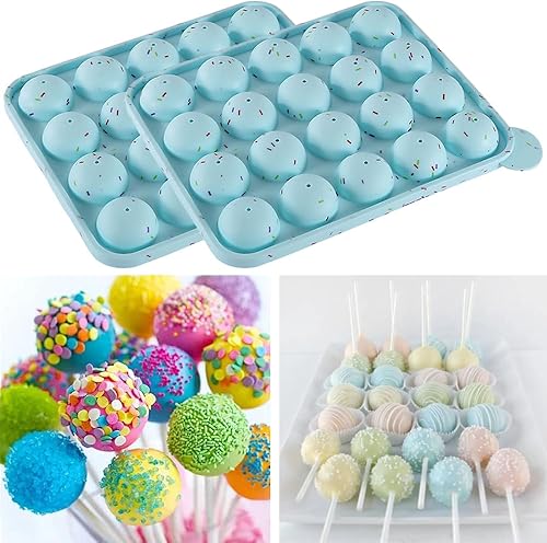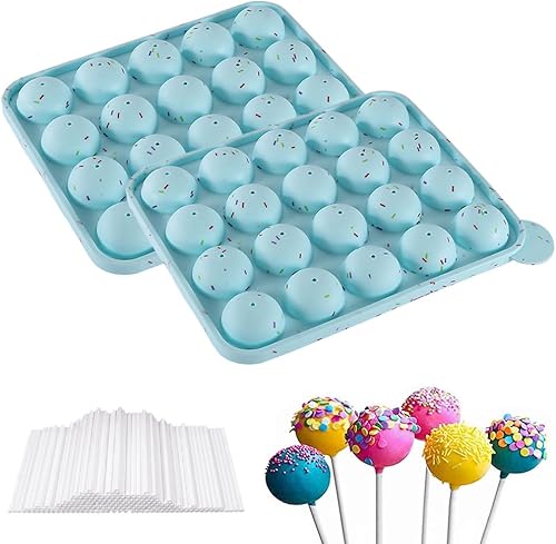 Moule à cake pop, en silicone, avec 100 bâtonnets à cake pop, 20 sucettes rondes, en silicone, pour bonbons, cupcakes, gelée, violet