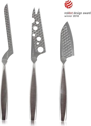 Couteau à Fromage Pâte Dure Monaco+ No. 9 de Boska/Fromages à pâtes très dures/Lame très tranchante/À motif gaufré/Argent / 21,2 cm